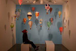 Joint Project Between Joe and me as our final for Screen Printing class. Cut and folded paper nets to look like hot air balloons.